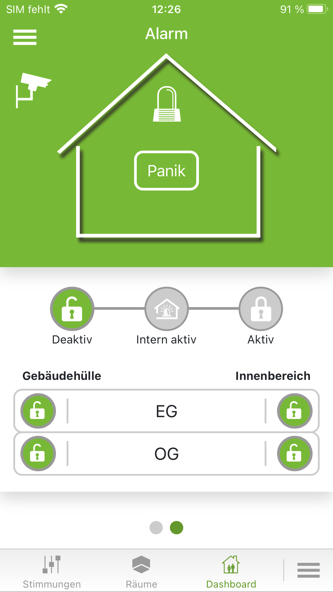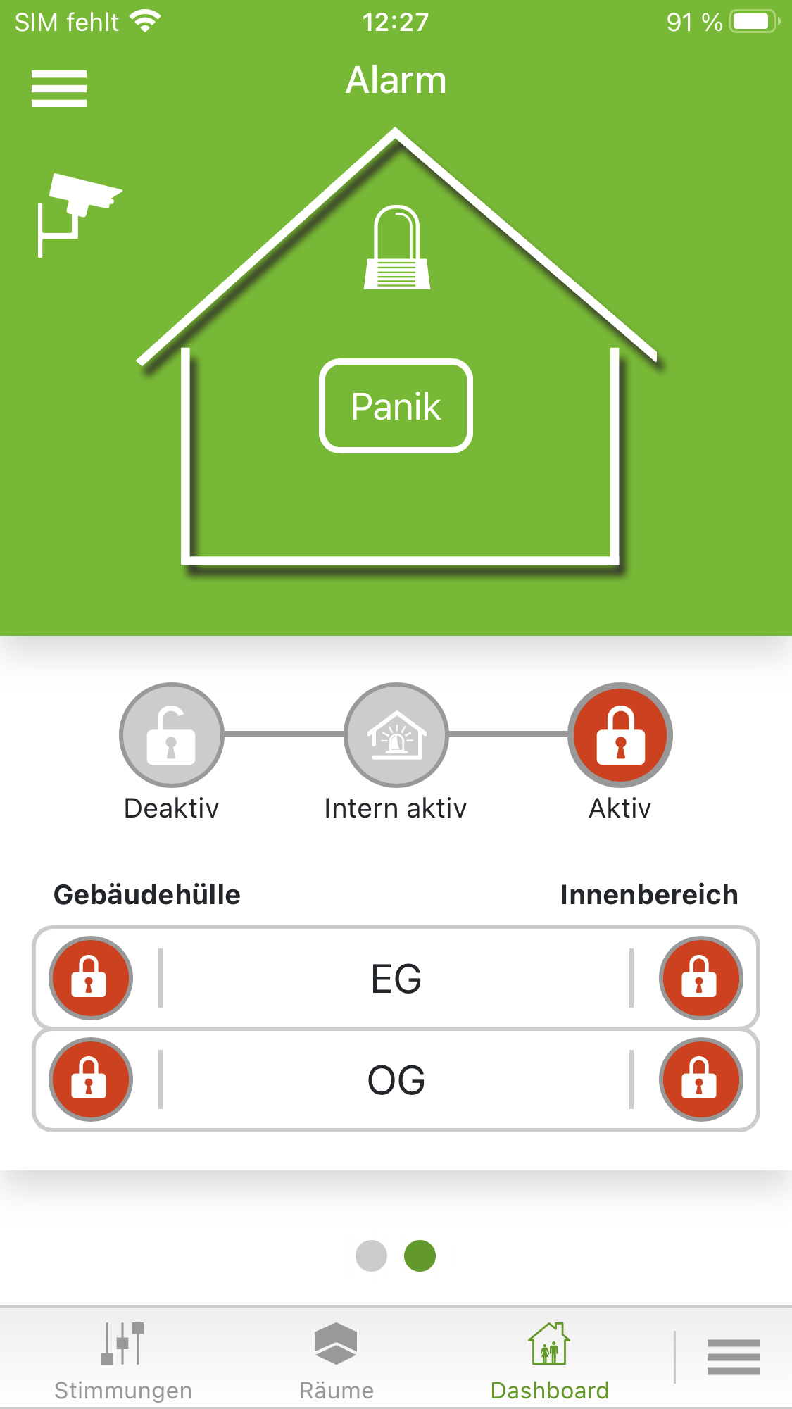 Die Bedienung des Alarmsystems erfolgt primär über das Dashboard.