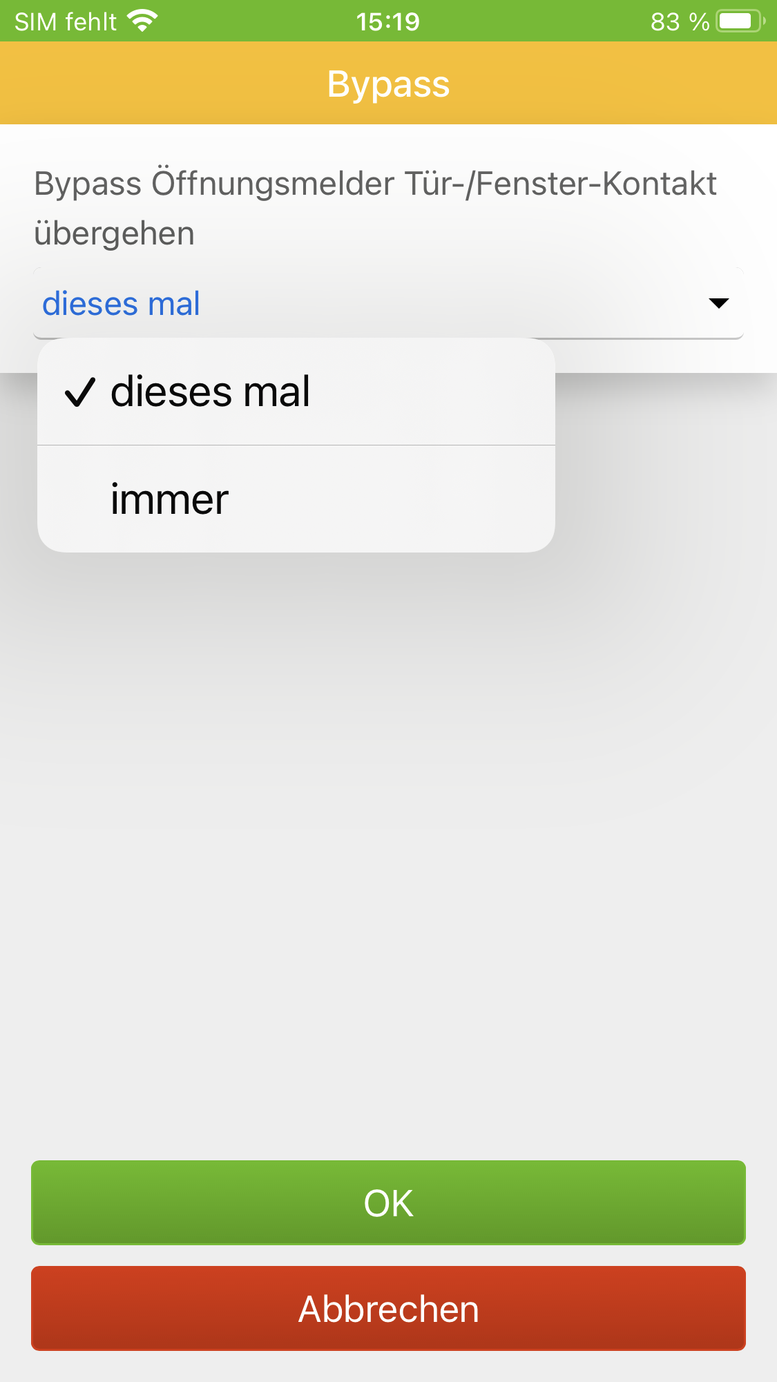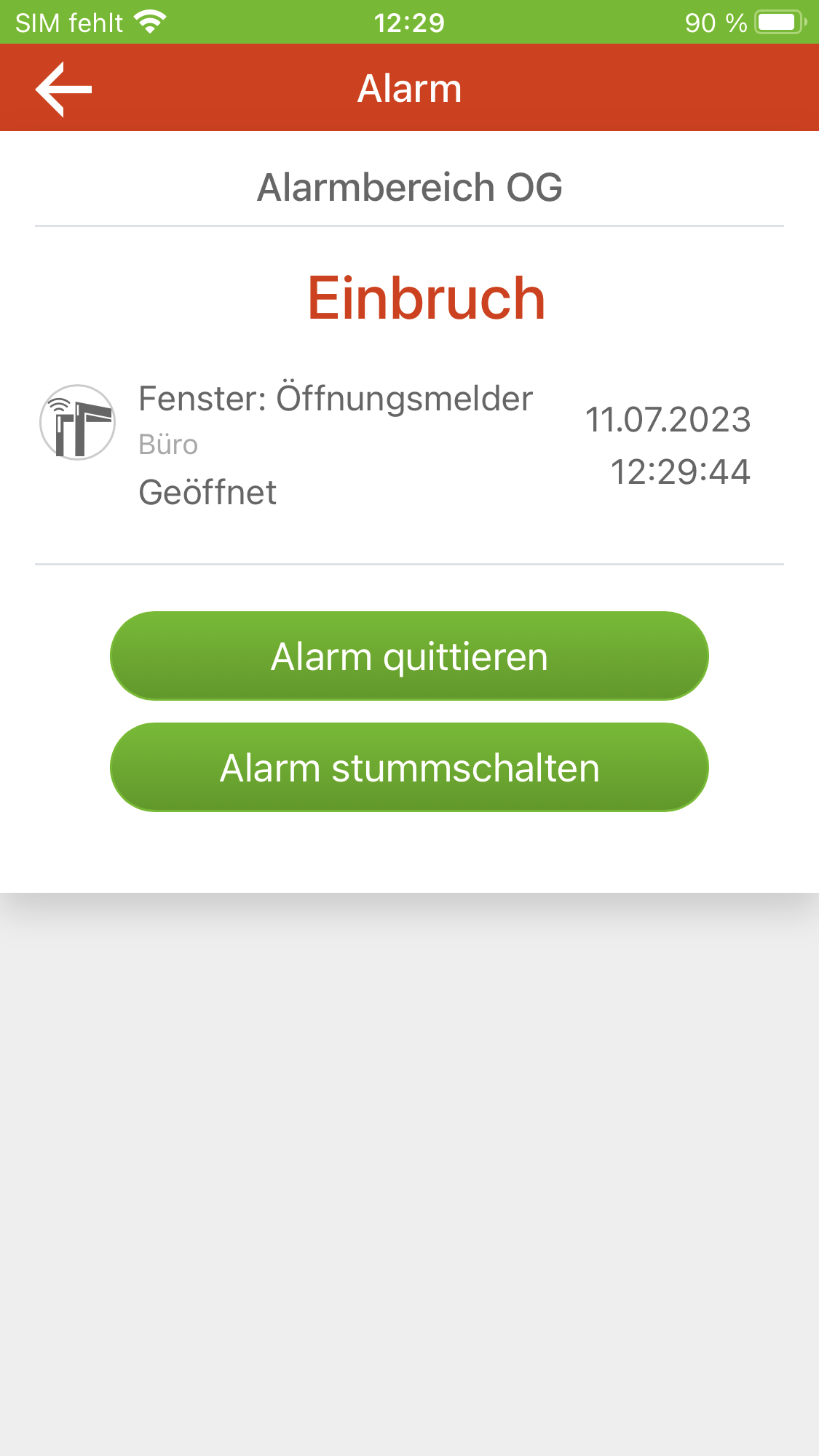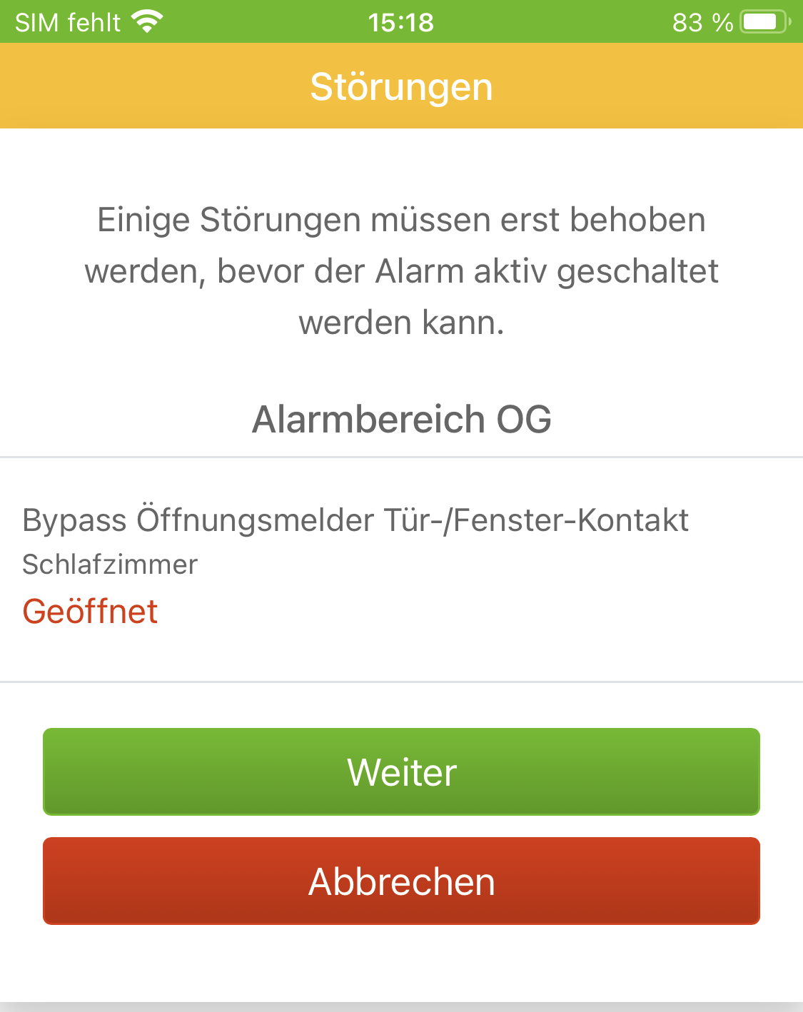 So ist bei deaktiviertem Alarmsystem ein geöffnetes Fenster eine Störung.