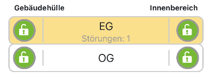 Welche Komponenten für den entsprechenden Modus aktiv sind, wird durch die Zuordnung von Sensoren zur Gebäudehülle oder zum Innenbreich definiert (siehe Einrichtung).